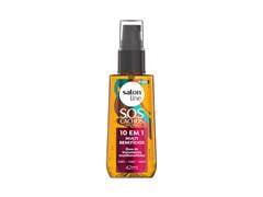 O Óleo de Tratamento Condicionante 10 em 1 S.O.S Cachos promove 10 benefícios em um único produto. 1) Blindagem do frizz 2) Reparação imediata 3) Hidratação Intensa 4) Umectação absoluta 5) Brilho extremo 6) Controle de volume 7) Redução da quebra 8) Redução das pontas duplas 9) Ação Anti-flake 10) Proteção total